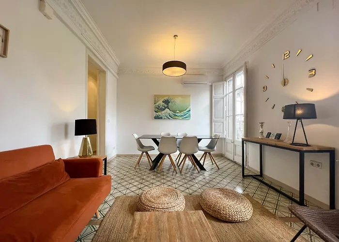 Dit 92 m² grote appartement is gelegen in de L'Eixample wijk van Barcelona, vrij dicht bij Akademia Theatre. La Rambla bevindt zich op 25 minuten lopen van dit appartement, terwijl Villarroel - Hospital Clinic busstation op 5 minuten wandelafstand van het pand ligt. Casa Batlló bevindt zich ook binnen het bereik van deze 1-badkamer accommodatie.